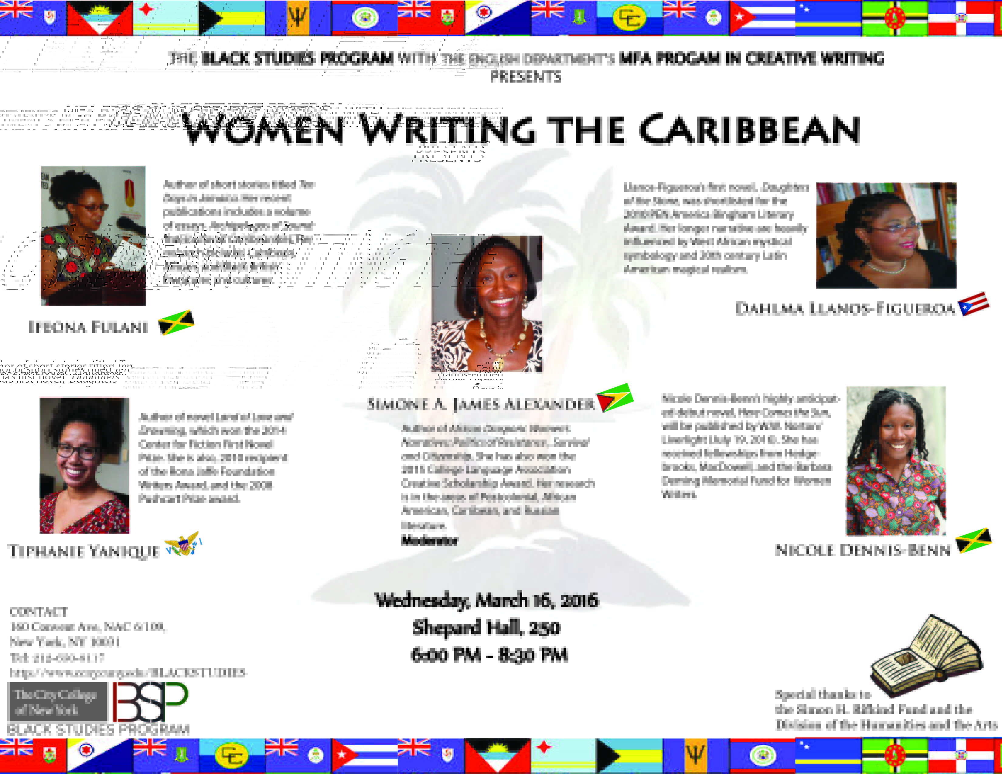 Greetings, folks. Just because it’s March, don’t mean we lose focus on Black issues. Above is a flyer for an upcoming program “Women Writing The Caribbean” jointly presented by Black Studies and the English program at CCNY.