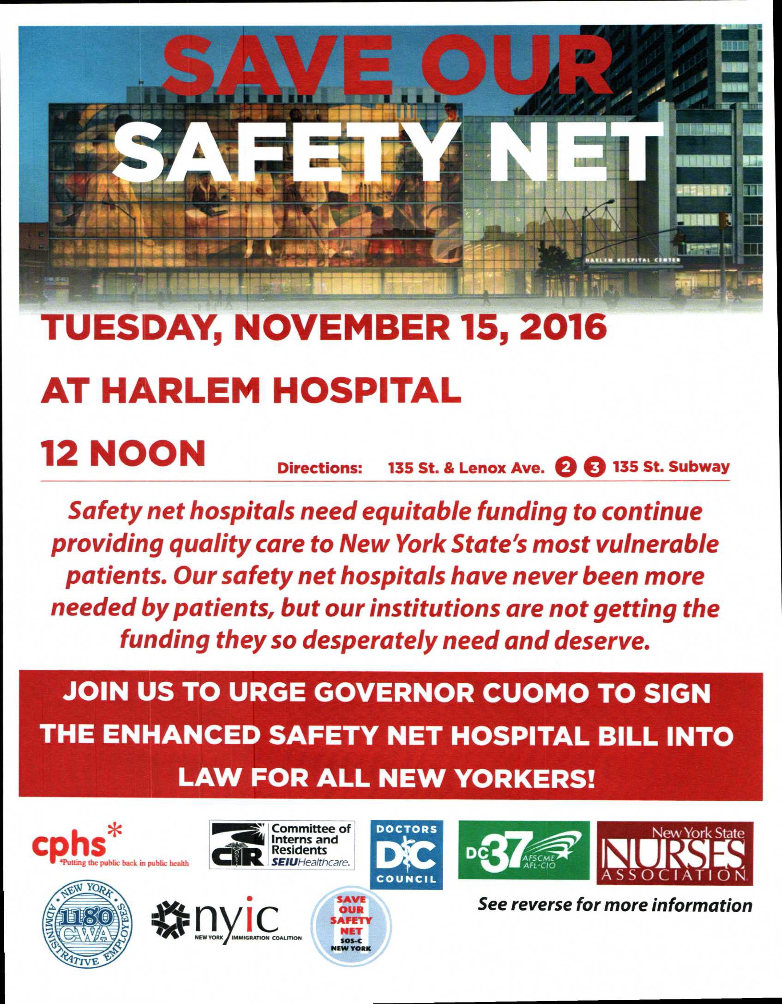 No matter who wins the election today, we all need to keep our eyes on issues in our respective communities. Next Tuesday, there will be a press conference at Harlem Hospital urging Governor Cuomo to sign the Enhanced Safety Net Hospital Bill. For more information, view the Scribd document link below.