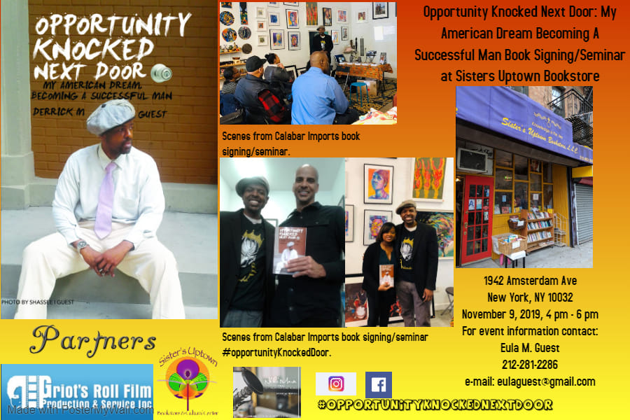 Derrick Guest will be having his next book signing at Sisters Uptown Bookstore in Harlem on Saturday, November 9th, 2019 from 4pm-6pm. Stop by to hear his story, and meet him in person.