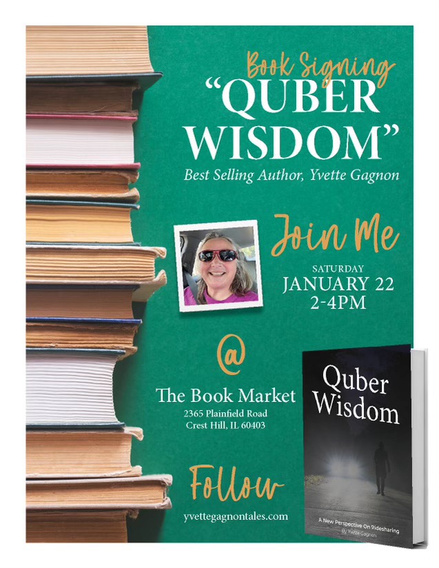 Yvette Gagnon: I’m a work in progress. Constantly learning and growing. I am driven to share with others the lessons I’ve learned through my experiences. Writing these experiences helps reach a larger audience than driving for rideshare. I’m adventurous, I love the outdoors. I have jumped out of a plane, flown planes, and can also spend the day fishing and be totally chill whether I catch a fish or not. I’m a hard worker, yet make time for my family and friends as well as anyone in need.