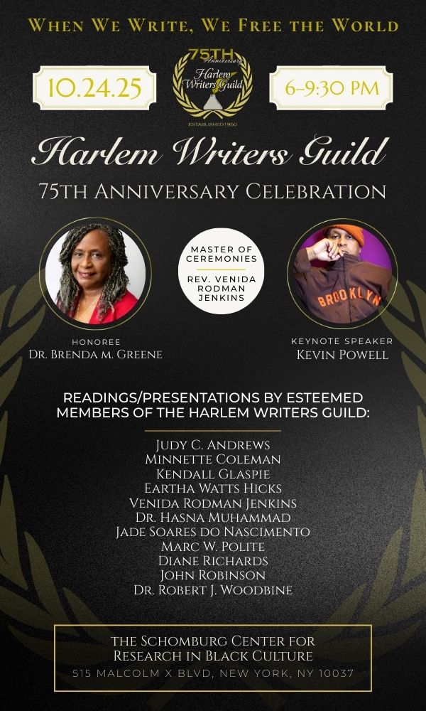 Reminder: Next month, the Harlem Writers Guild will celebrate its 75th anniversary at the Schomburg Center. Please see eventbrite link below.